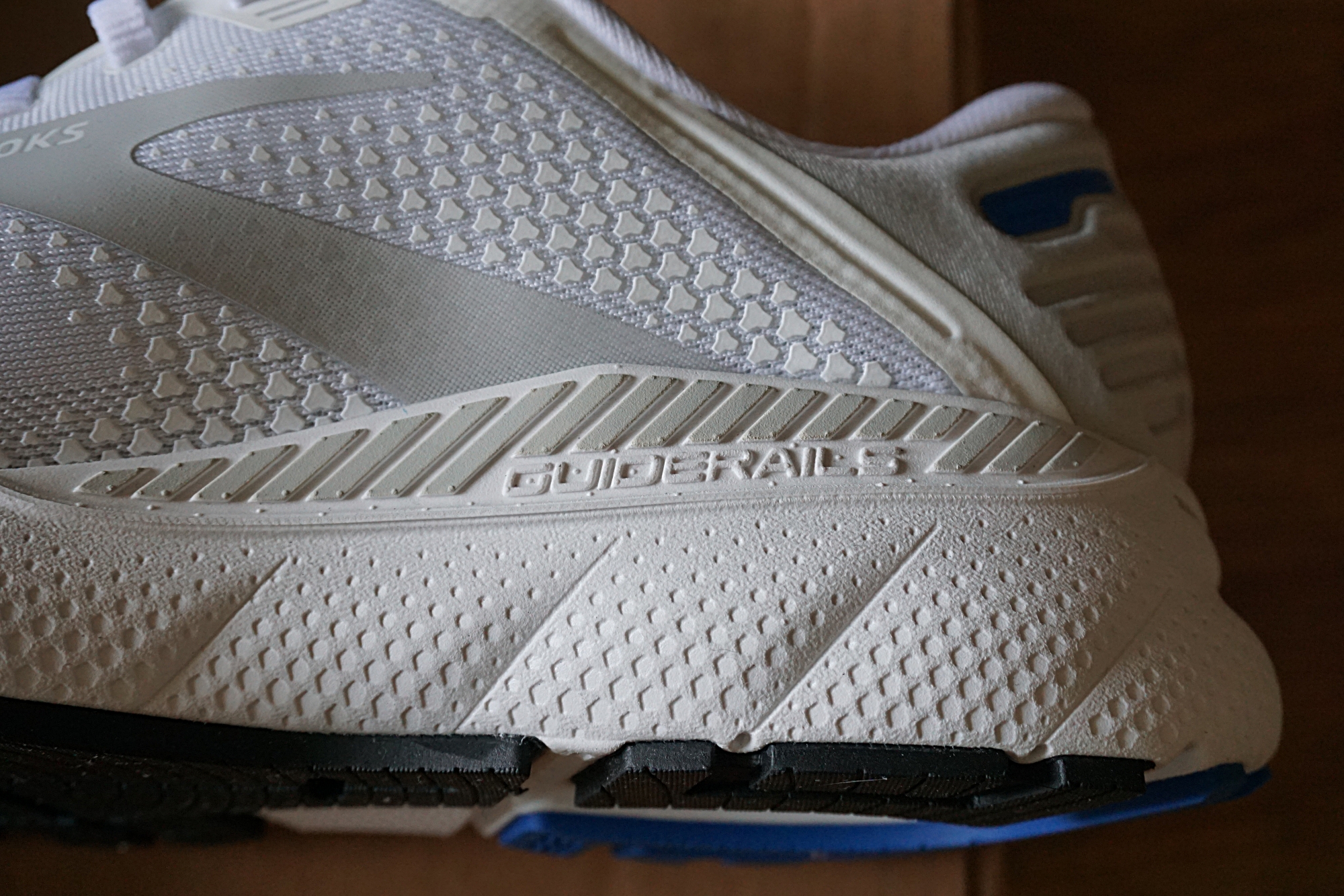 그리고 측면2 사진에 나타나듯 고스트 모델에 저 가이드레일 기술이 추가된게 아드레날린이라는데, 볼링장의 범퍼와 같은 원리로 신발의 내/외측에 삽입돼 몸의 흔들림과 발의 과도한 회전을 막아준다고 합니다.