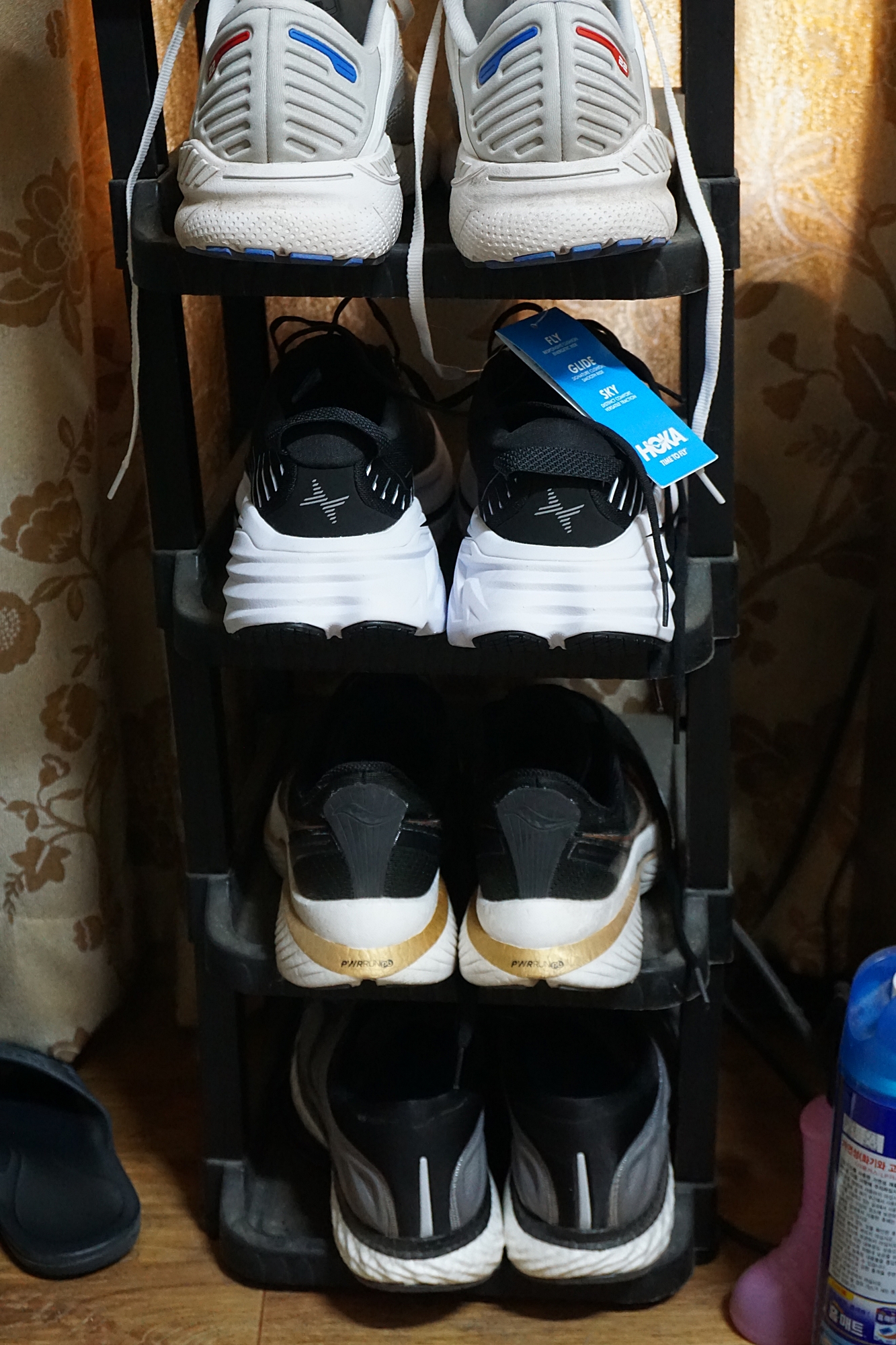위부터 브룩스 아드레날린GTS22 코리아 에디션, 호카오네오네 본디X, 써코니 엔돌핀 스피드3, 써코니 허리케인22 입니다.