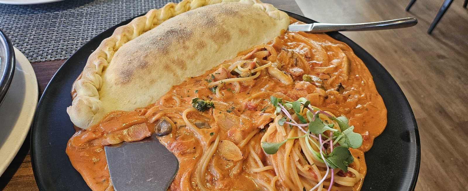 베이컨 로제파스타와 깔조네 피자를 같이 먹는 타입이네요.